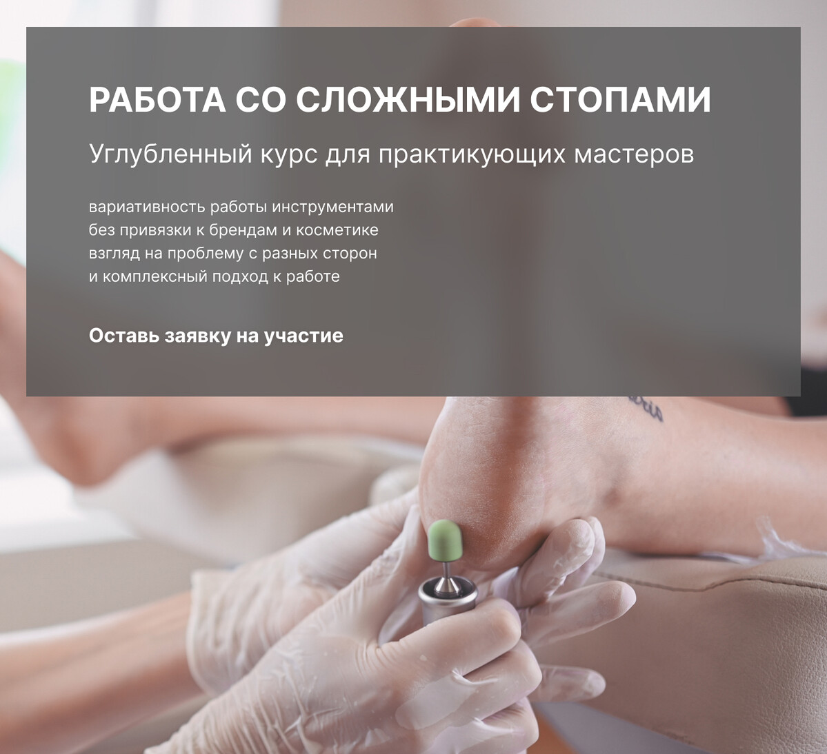 Онлайн-курс «Немедицинская подология. Работа со сложными стопами»