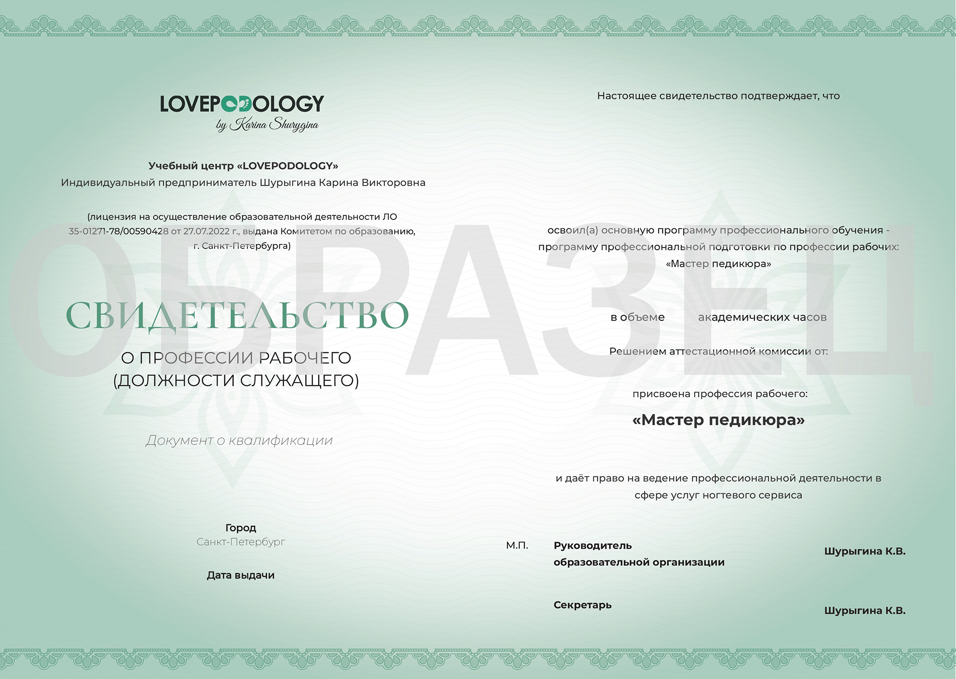 Образцы выдаваемых документов